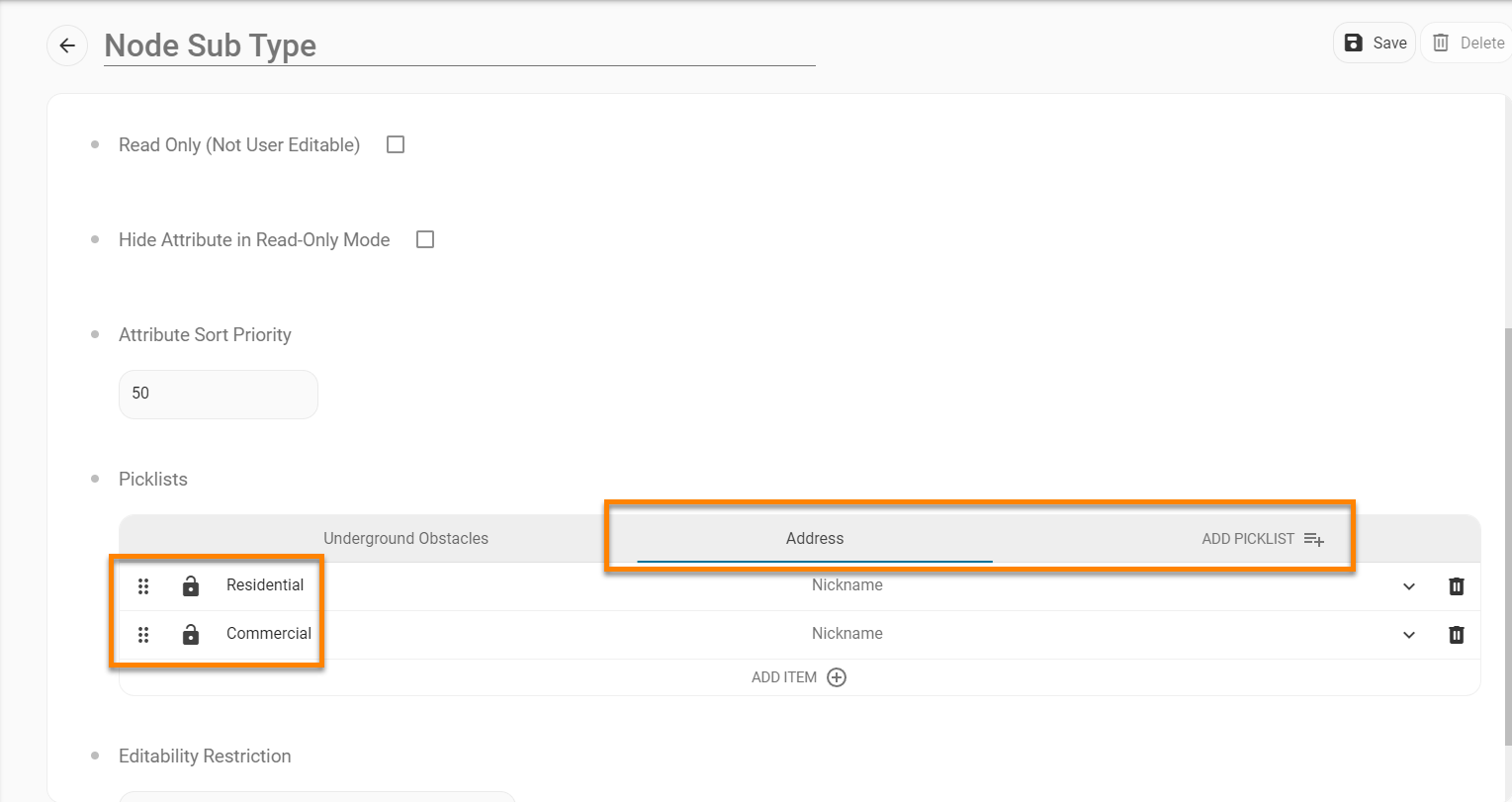 First, make sure you use the Model Editor to set up the attributes needed in this scenario. For this example, I searched for "Node Type" in the Attributes under the Model Editor, added a picklist called "Address," and added a value for "Address."