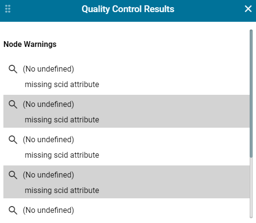 If the birthmark attribute is on the pole but is missing data, the "Insert Pole Spec Warnings" window will pop up to show you the poles that will need the pole spec added manually. Click on the magnifying glass icon to navigate directly to the pole to add the pole spec attribute. You can leave the QC window open as you move through the list to fix and update the necessary nodes.